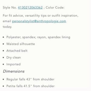 Dimensions: Fall 41.5" from shoulder, Laying flat approx. - Waist with elastic 13", Pit to pit 17"