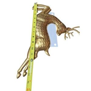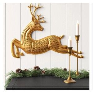 Uplift your seasonal decor with an amazing piece, the Metallic Leaping Deer Wall Decor from Wondershop™. This gold-tone wall decor is designed in a leaping deer, complete with antlers for realistic appeal. Made with metal, this leaping deer wall decor adds artful flair to your home. Simply place it on the wall just above the mantel or table, and add bottlebrush trees and other decorative pieces for a festive display