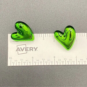Super cute puffy heart metallic green stud earrings that are perfect festival, club wear or gift