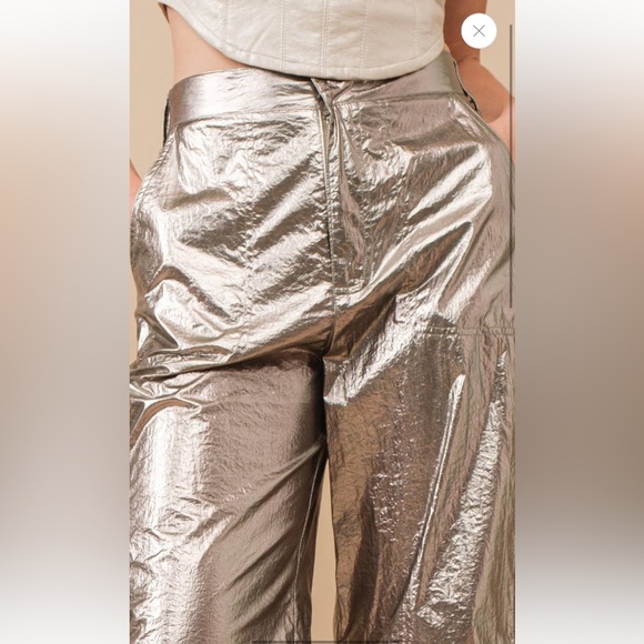 Reveal your playful side with Marisa Metallic Pants! These fun, relaxed fit pants feature a hint of olive hue and a stylish utility design. Made with durable nylon material, they will surely make a statement wherever you go. Be bold and shine on in Marisa Metallic Pants!