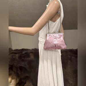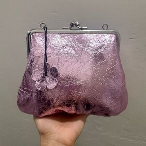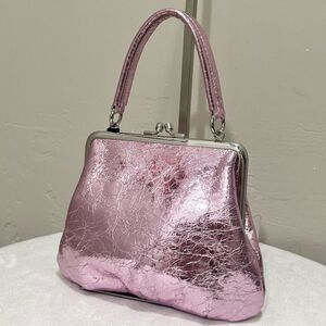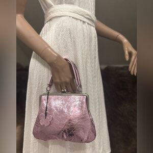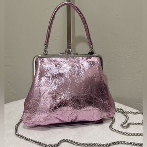 Metallic Pink Genuine Leather Handmade Kisslock Clutch/ Evening Bag/Crossbody