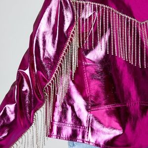 Shine bright with this stunning metallic pink jacket. Perfect for adding a bold touch to any outfit.