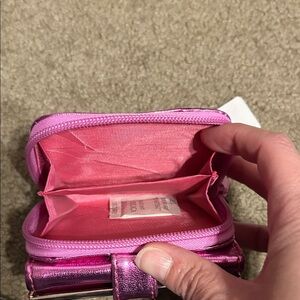 Chic and stylish metallic pink wallet perfect for any occasion. Compact design with a sleek finish.
