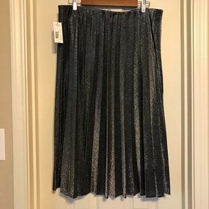 This pleated skirt by Worthington has an elastic banded waist. The skirt is lined and falls below knee to mid-calf.
