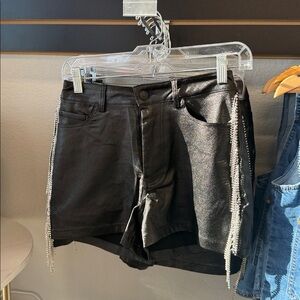 Metallic Pu Mid Rise Side Rhinestone Fringe Shorts