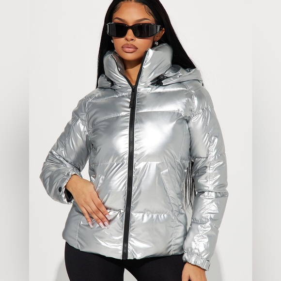 Down Metallic Puffer Coat - worn a few times!