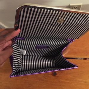 Metallic Purple cross body bag with removable and adjustable strap. 8x6 inches.