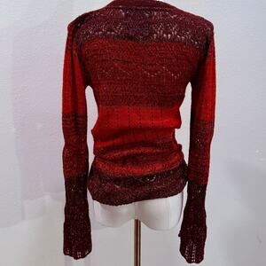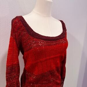 Metallic Red Burgundy Knit Sweater Women Medium Holiday Y2K Festive Shimmer Fall