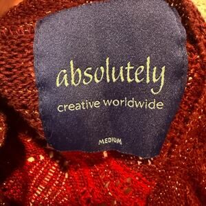 Metallic Red Burgundy Knit Sweater Women Medium Holiday Y2K Festive Shimmer Fall Absolutely Creative Worldwide