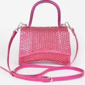 Metallic Rhinestone Hotfix Top Handle Flap Bag