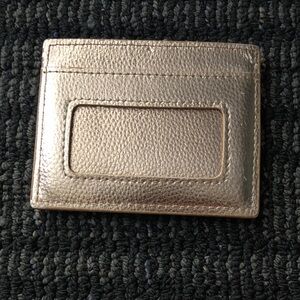 Sleek metallic rosé gold card holder with multiple slots. Perfect for organizing cards.