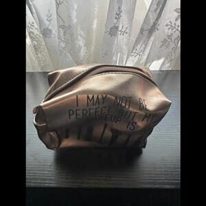 Metallic Rose Gold Cosmetic Bag - "I May Not Be Perfect But My Makeup Is"