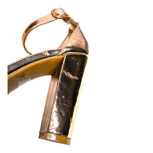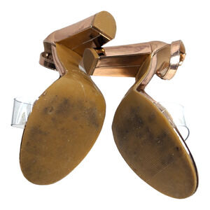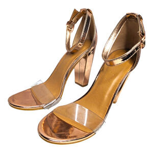 Metallic Rose Gold Womens Size 7 Ankle Strap Sandals Clear Strap Block Heels