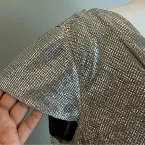 Silver Metallic Cowl Neck Ruched Cocktail Dress Cap Sleeve Party Holiday New Year’s Eve Wedding Guest Evening Glam