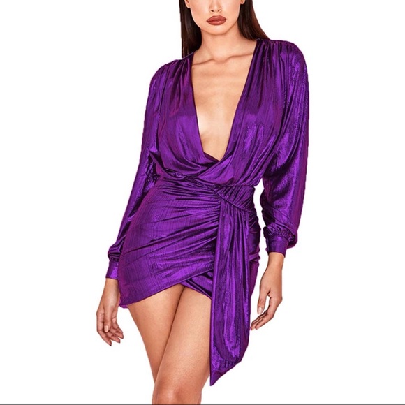 Deep V neck, long sleeve metallic ruched dress. Never worn