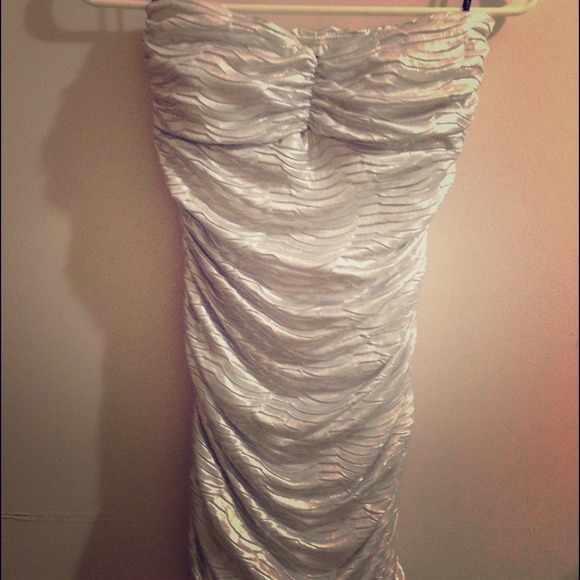 Feel like standing out rather than blending in at a party? Or having a girls night and can't find anything to wear? This is perfect with the right accessories! Fun, metallic-silver, ruched, strapless dress. Only worn once. 100% polyester. In excellent condition! 💞😉🚫TRADE🚫