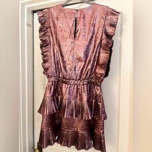 Shimmering pink/ mauve color metallic dress with ruffle details. Perfect for parties.