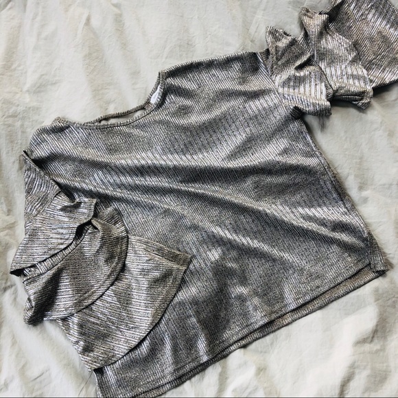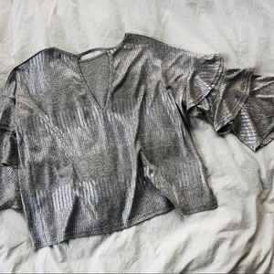 Metallic Ruffle Sleeve Blouse