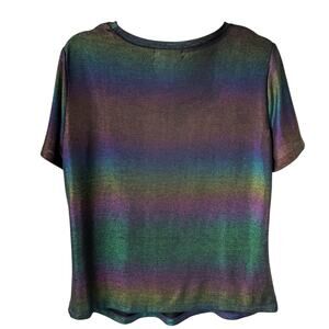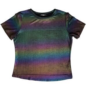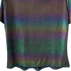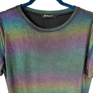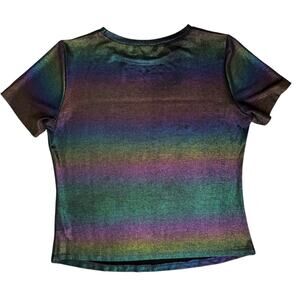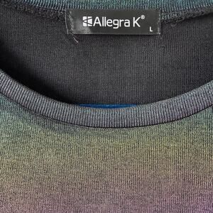 Allegra K Metallic Shimmer Rainbow Top Women's Large Sheer Festival Rave Club Party