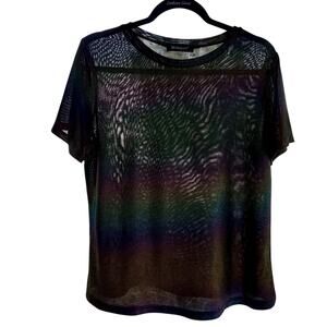 Metallic Shimmer Rainbow Top Women Large Sheer Festival Rave Club EDC Party READ