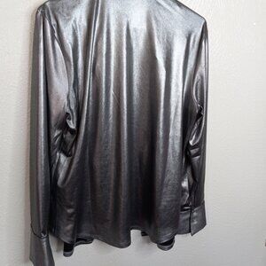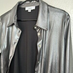 CeCe metallic silver button-down blouse.