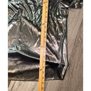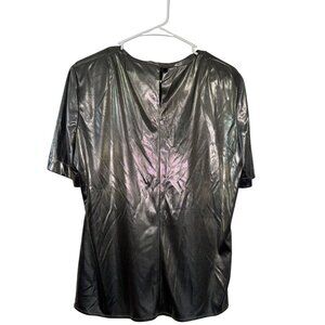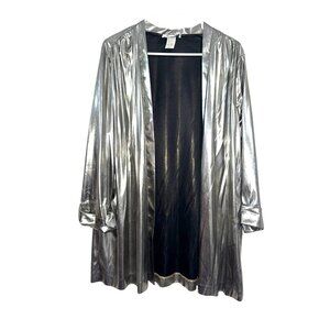 Metallic Silver 2-Piece Set Open Front Duster Jacket & Short Sleeve Top Womens S