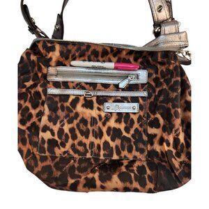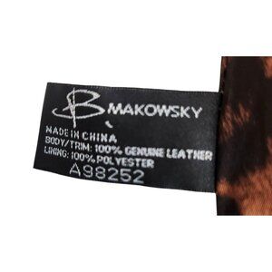 Metallic Silver B. Makowsky Genuine Leather Tote Shoulder Bag With Leopard Print