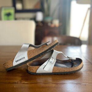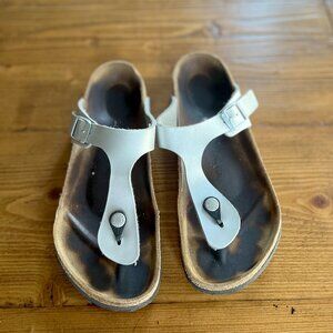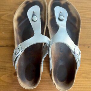 Well-loved Birkenstock Gizeh sandals in size 39, these fit American women's size 8/8.5.