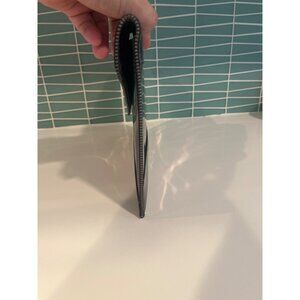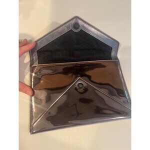 Metallic Silver Envelope Clutch Bag With Snap Closure & Interior Card Slots