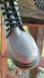Women's combat boot size 8. Metallic silver fabric finish. Thick rubber sole. Good pre-owned condition.