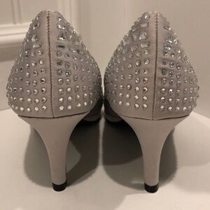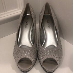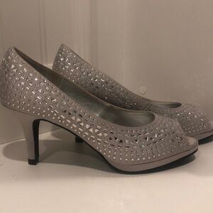 Kelly & Katie silver satin open toe platform heels with bling!!!