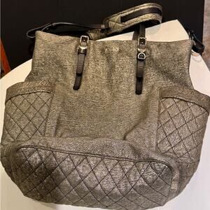 Metallic Silver JIMMY CHOO BLAIR 2 Way Tote/Shoulder Large Leather Handbag-