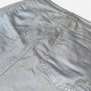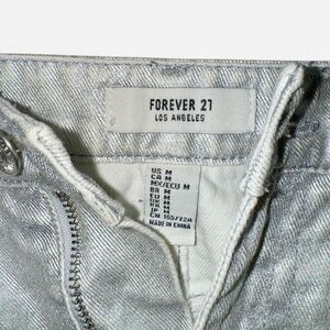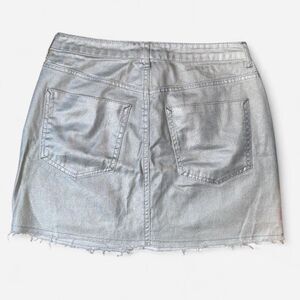 Metallic silver mid-rise denim mini skirt with frayed distressed hem from Forever 21 in size WOMENS MEDIUM.