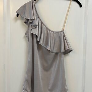 Metallic Silver One-Shoulder Ruffle Top Made in France Size S
