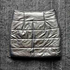 This item is a standout to make any simple outfit POP !!! Mini puffer skirt with a zipper closure, in addition to 2 small loops where you can attach some extra bling !!