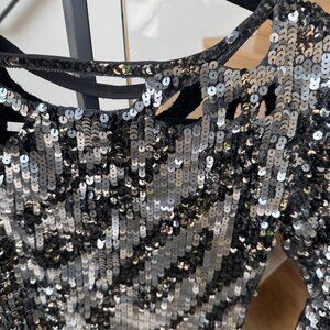 Metallic Silver Sequin Cut Out Mini-Dress, Size XS/S