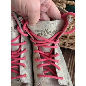 Metallic Skechers On Th Go combat moto boots sz 10 barbiecore soft grunge