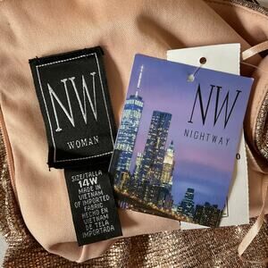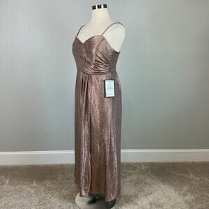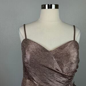 Metallic Sleeveless Evening Gown Rose Gold Size 14W Nightway Thigh Slit Dress