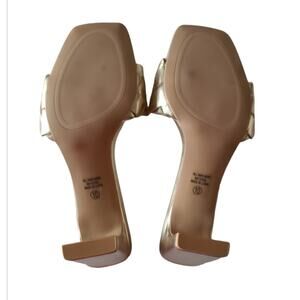 Metallic Slide Sandals Block Heel Square Toe Braided Size 10 Champagne Gold Y2K
