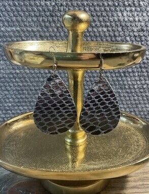 Metallic Snake Skin Tear Drop Faux Leather Dangle Earrings
