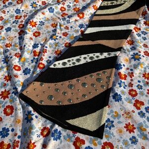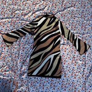 Metallic Studded Zebra Bell Sleeve Sweater Dress