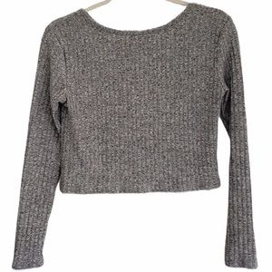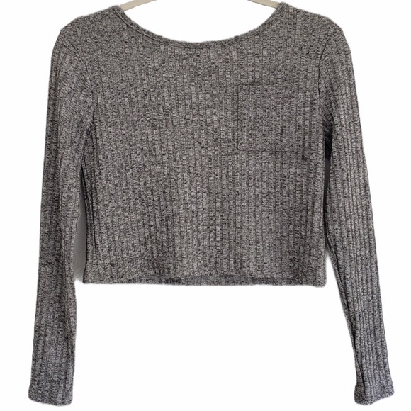 Shiny, striped grey blouse with pocket. It has never been worn. The material is pretty stretchy. Make me an offer!