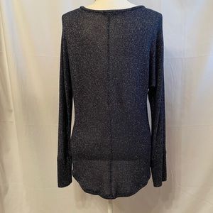 Slightly sheer dark blue top with metallic threads. Longer in back.