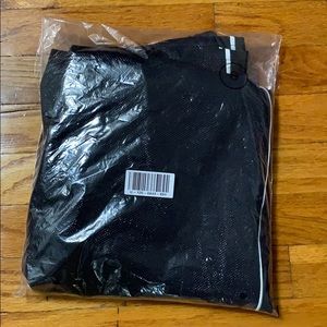 Black sweatpants with sparkle/metallic detailing, white stripe on sides