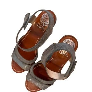Vince Camuto set a bold ankle strap atop a platform heel for a boho-chic finish. Combining modern appeal and retro-inspiration. Wear them with your favorite pair of jeans and a light sweater.