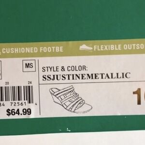Step out in style with these chic metallic wedge sandals. Perfect for any occasion. Color is silver with a tint of gold.Heel is 3" and are size 10