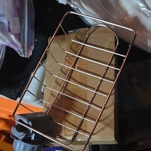 Sleek metallic wire rack for kitchen sink sponges. Perfect for organizing and letting the dry out.