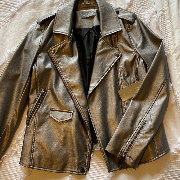Suuuuper cute metallic biker jacket — not too flashy can be worn casually! Never worn, tag of brand still attached. Someone please take it off my hands it’s too cute to not be worn out. Open to offers 💫