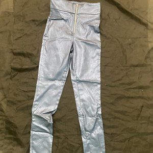 Metallic blue skinny pants