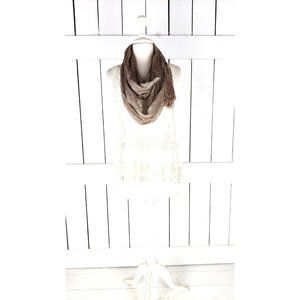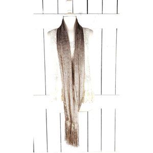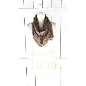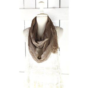 Metallic champagne gold mesh open weave infinity reversible fringe scarf